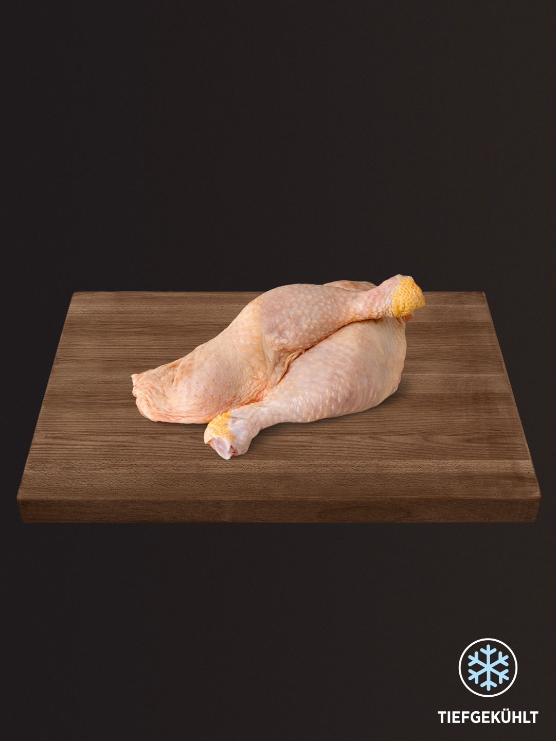 Hühnerkeulen mit Haut und Knochen, leicht durchzogen mit Fett und Bindegewebe, tiefgekühlt